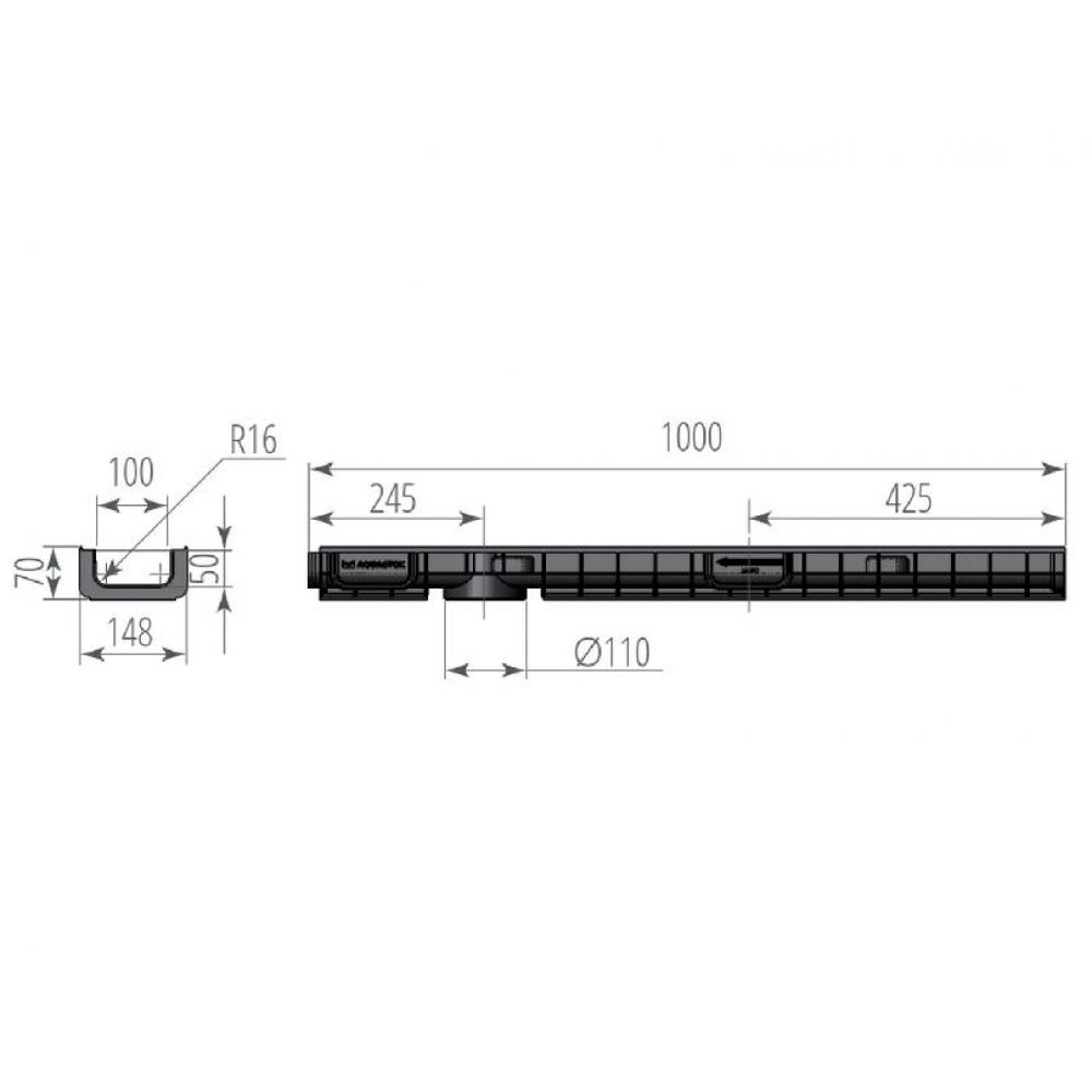 Лоток водоотводный пластиковый ЛВП Норма 100 Н70 от производителя Аквасток по цене 470 р